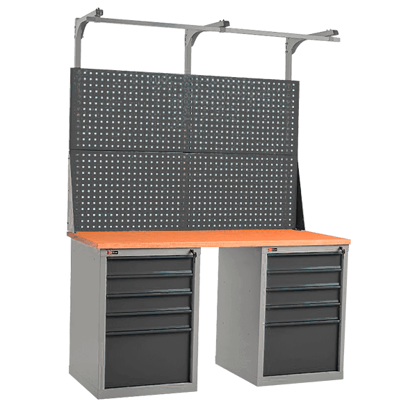 - Опоры для столешницы: две инструментальные тумбы с пятью выдвижными ящиками в каждой.
