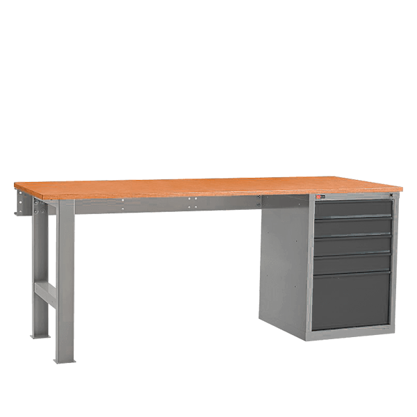 - В качестве одной из опор служит инструментальная тумба с пятью выдвижными ящиками.