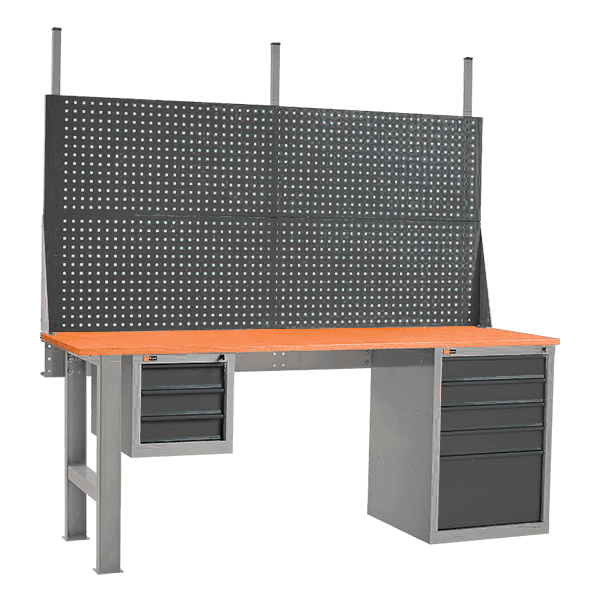 - Перфорированный экран и подвесная тумба с тремя выдвижными ящиками.