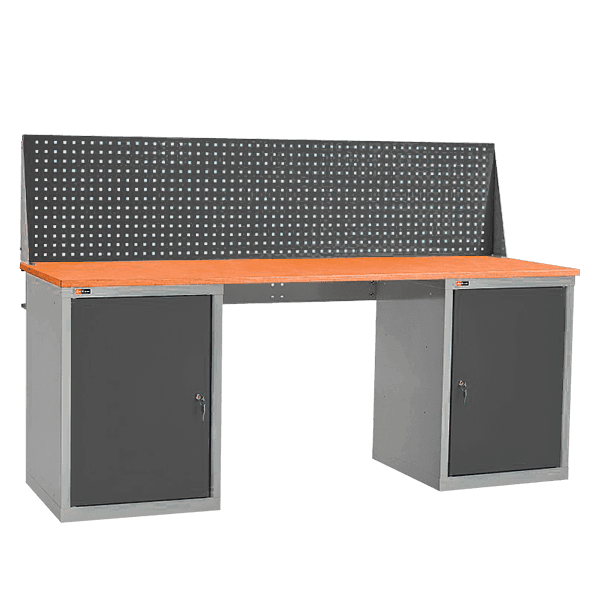 - Опоры для столешницы: 2 инструментальные тумбы с распашной дверцей и 2 полками.