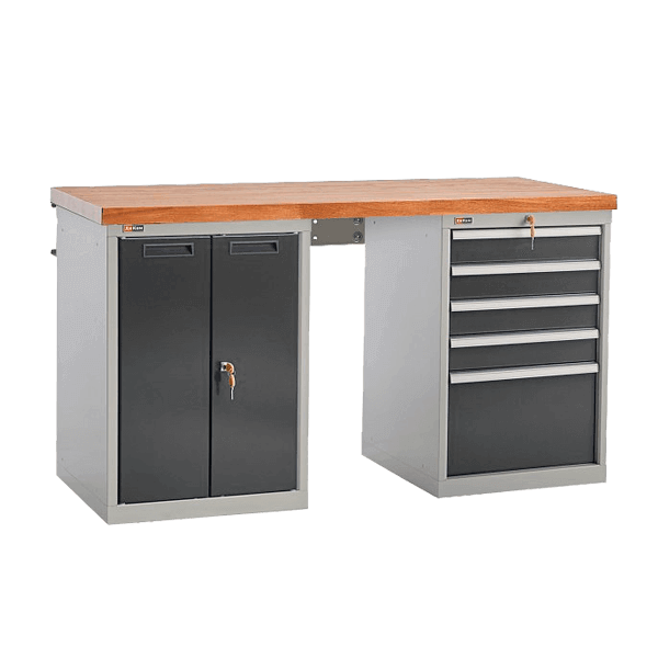 - Тумба с 5 выдвижными ящиками, запираемыми на центральный замок. Нагрузка на каждый ящик до 100 кг.