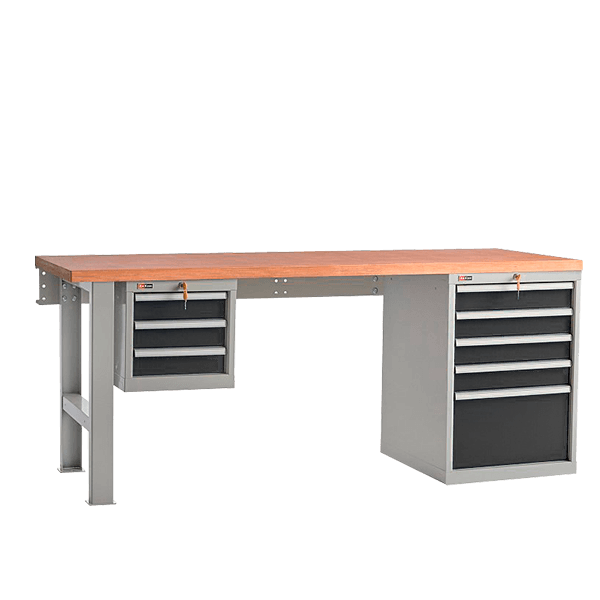 - Возможна установка комбинированной столешницы 40 мм (К), из фанеры 40 мм (Ф), из фанеры с предустановленным стальным листом (МФ),из фанеры, покрытой оцинкованным листовым металлом (ЦФ).