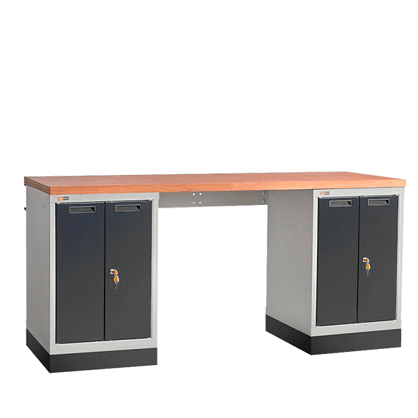 - Опоры столешницы — две напольные тумбы с запираемыми дверцами. Внутри тумб — перфорированные экраны на боковых стенках. Возможна дополнительная установка полок, нагрузка на каждую не более 200 кг.