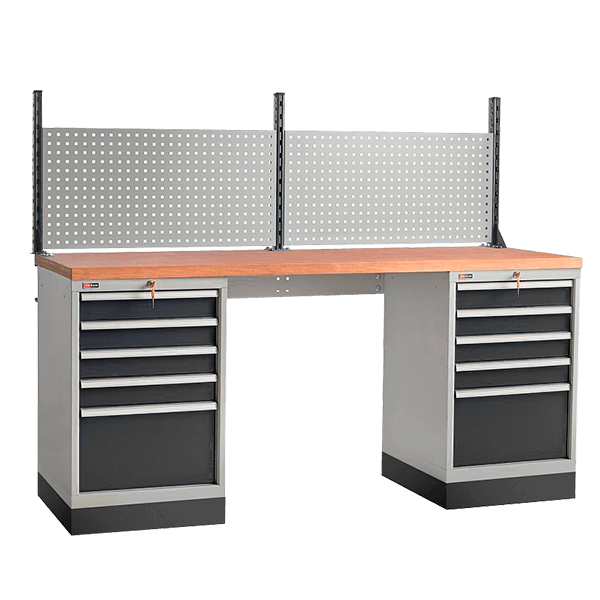 Верстак двухтумбовый металлический ВС-200-09 с экраном ВС-200-01