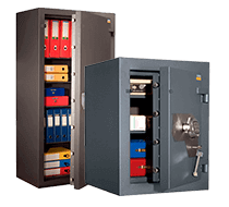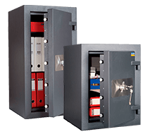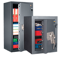 Предназначены для хранения денег, ценностей, важных документов частными лицами и организациями. Комплектуются ключевым либо электронным замком. У замков и ригелей есть защита от высверливания и выбивания. Возможно анкерное крепление к полу. Взломостойкость сейфов обеспечивается с помощью входящего в состав армированного бетона и других материалов.