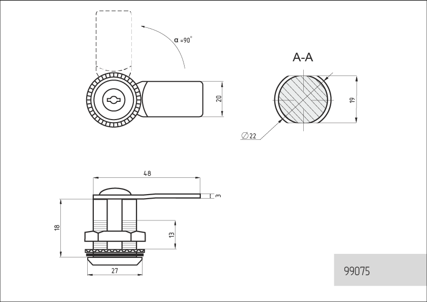 - Угол поворота ключа – 90 градусов.