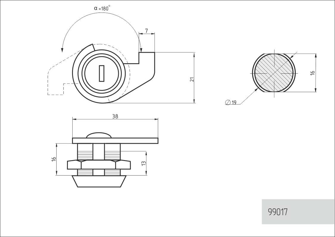 - Угол поворота ригеля составляет 180 градусов; имеется фиксатор поворота.