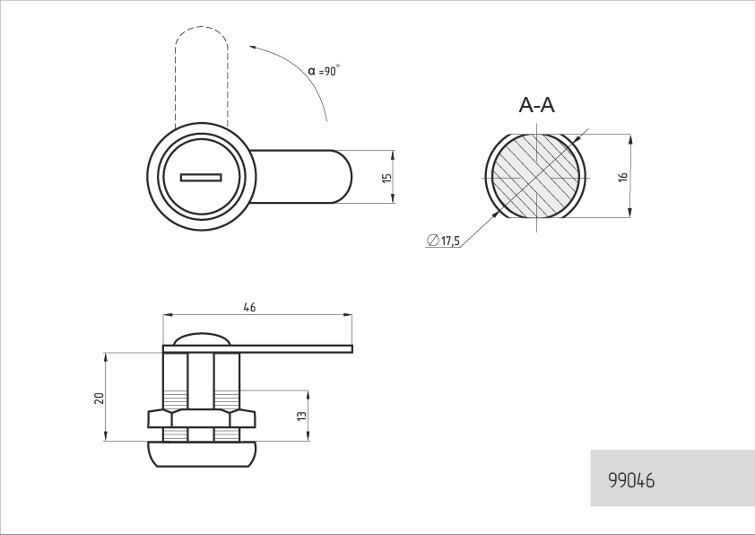 - Угол поворота ригеля составляет 90 градусов, имеется фиксатор поворота.