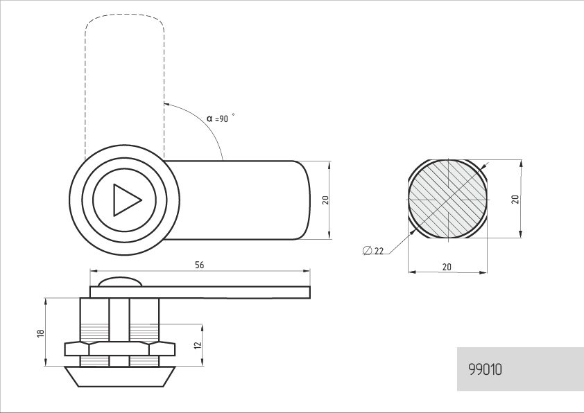 - Угол поворота ригеля составляет 90 градусов; имеется фиксатор поворота.