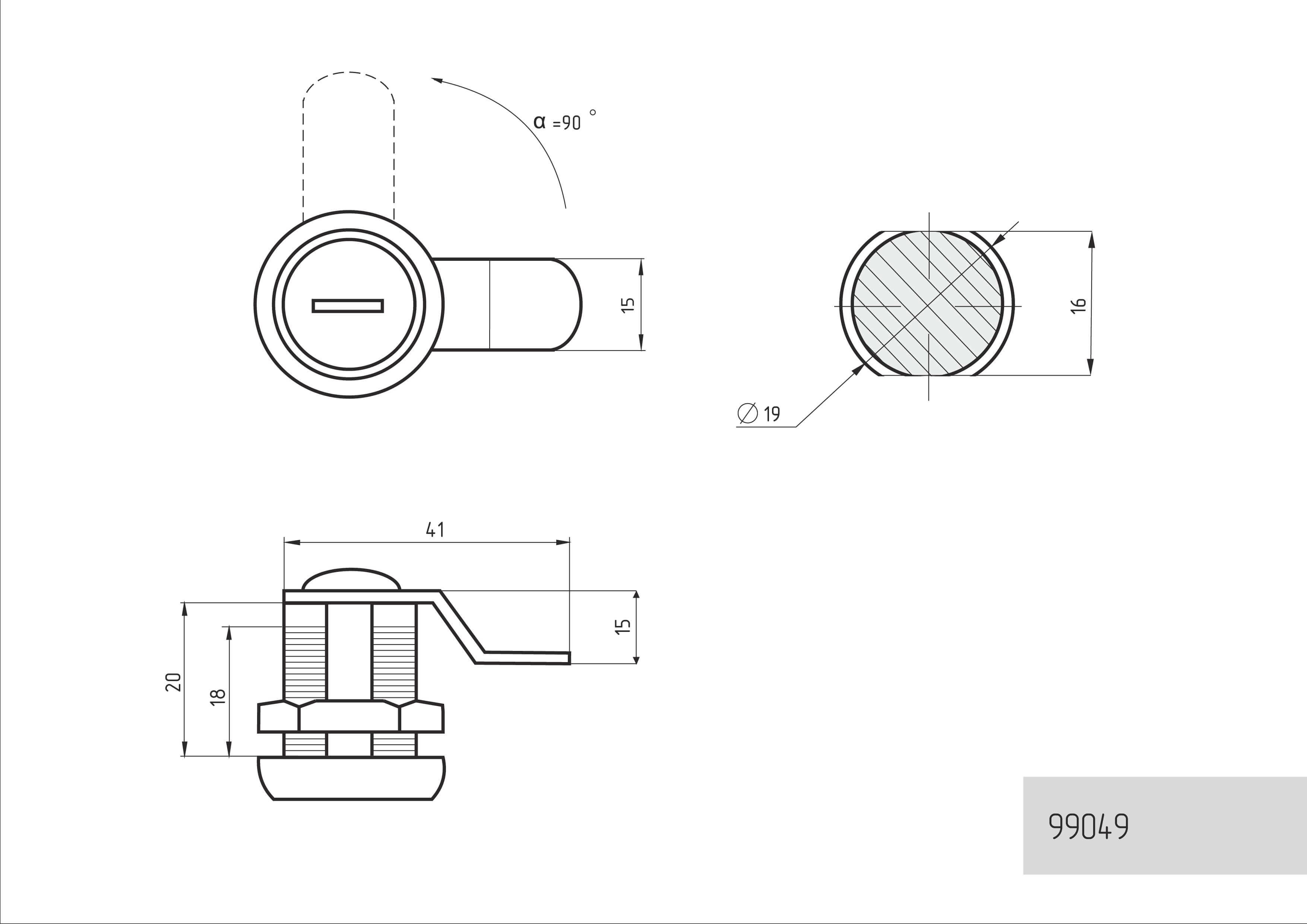 - Угол поворота ригеля составляет 90 градусов; есть фиксатор поворота.