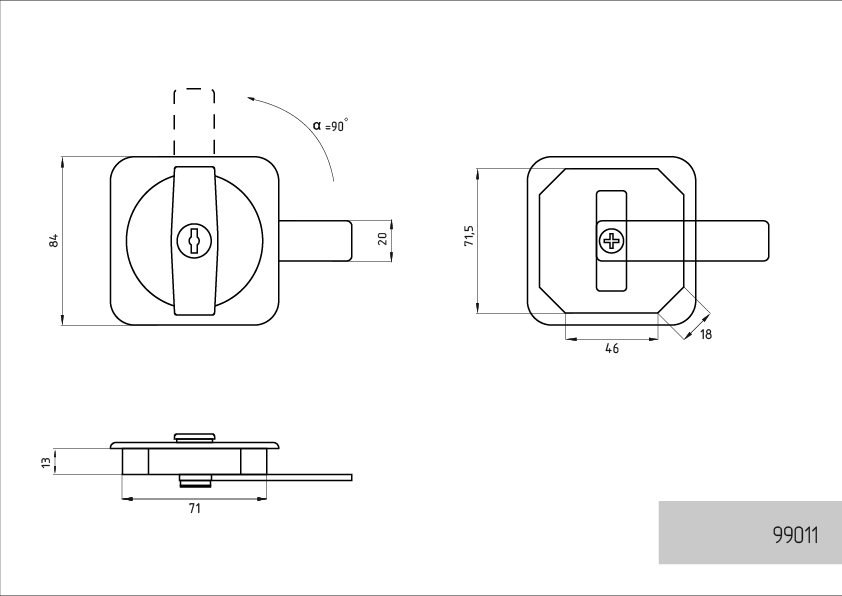 - Угол поворота ригеля составляет 90 градусов; имеется фиксатор поворота.