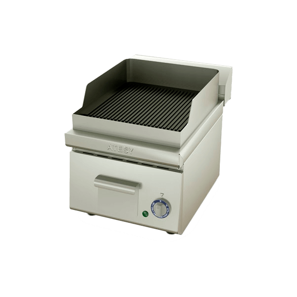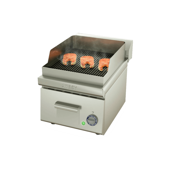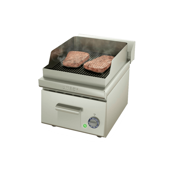 - Сборная электросковорода из нержавеющей стали с ребристой поверхностью используется для приготовления стейков из мяса и рыбы, сосисок, колбасок, сарделек, шпикачек, котлет для бургеров и овощей-гриль.